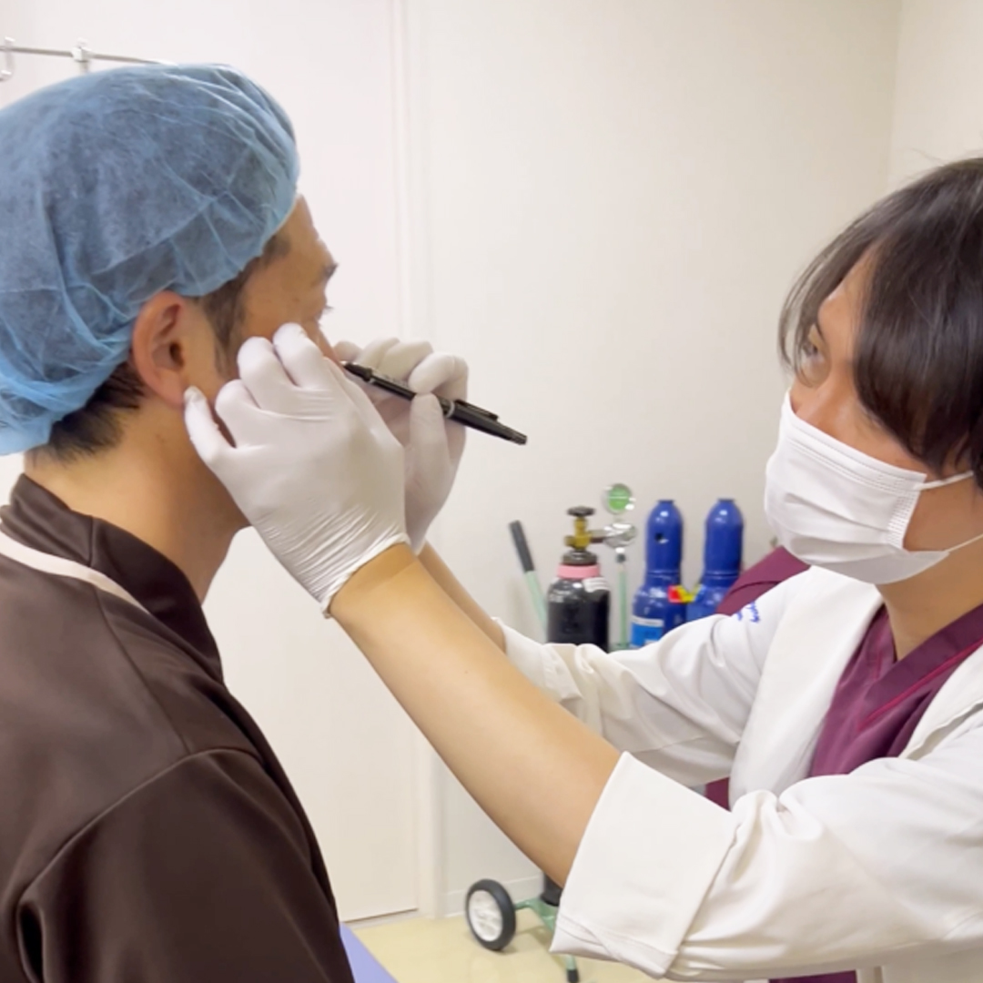 担当専門医師より改めて患者さまのご要望を伺い、施術法や施術内容のご説明をいたします。 また、施術を行う部位を拝見し術後シミュレーションなどもいたします。